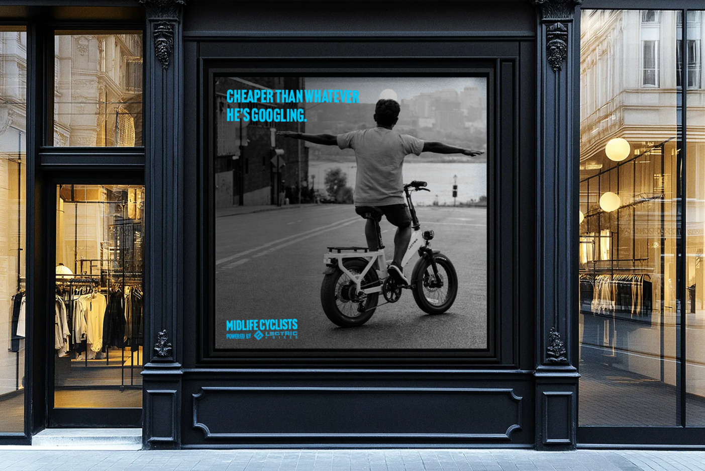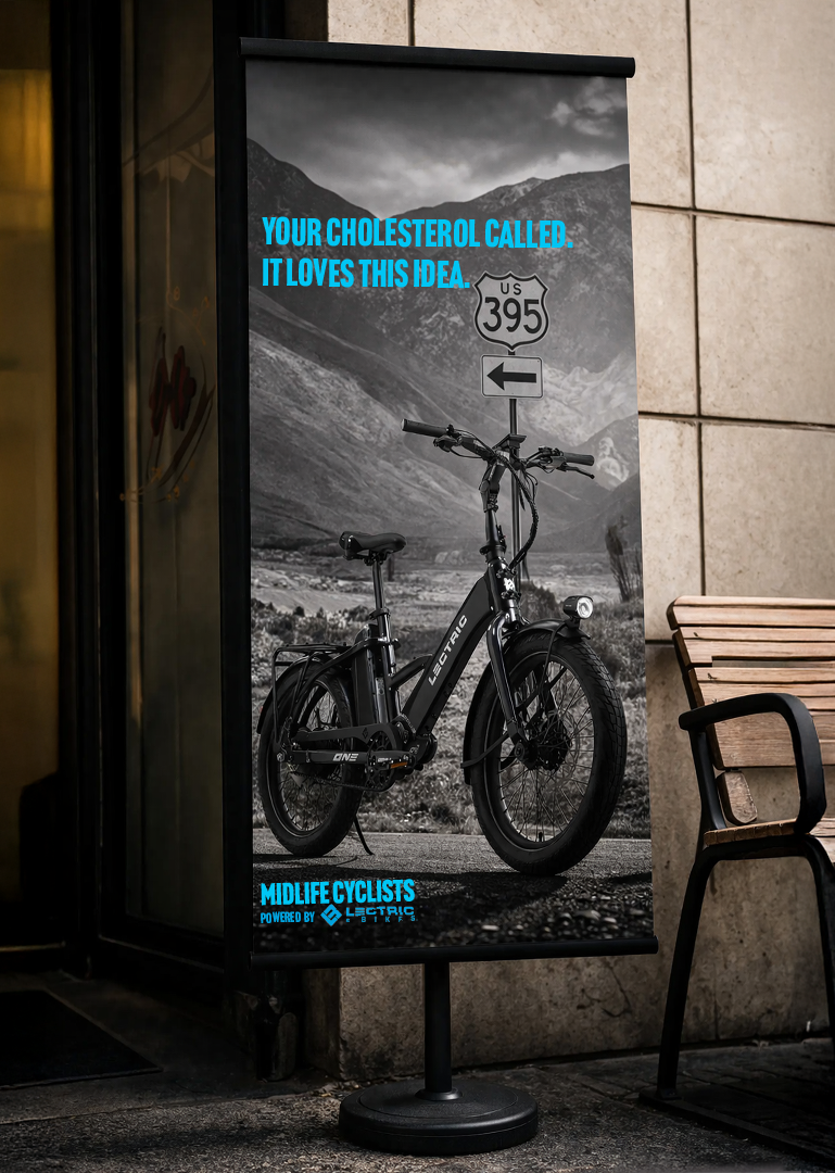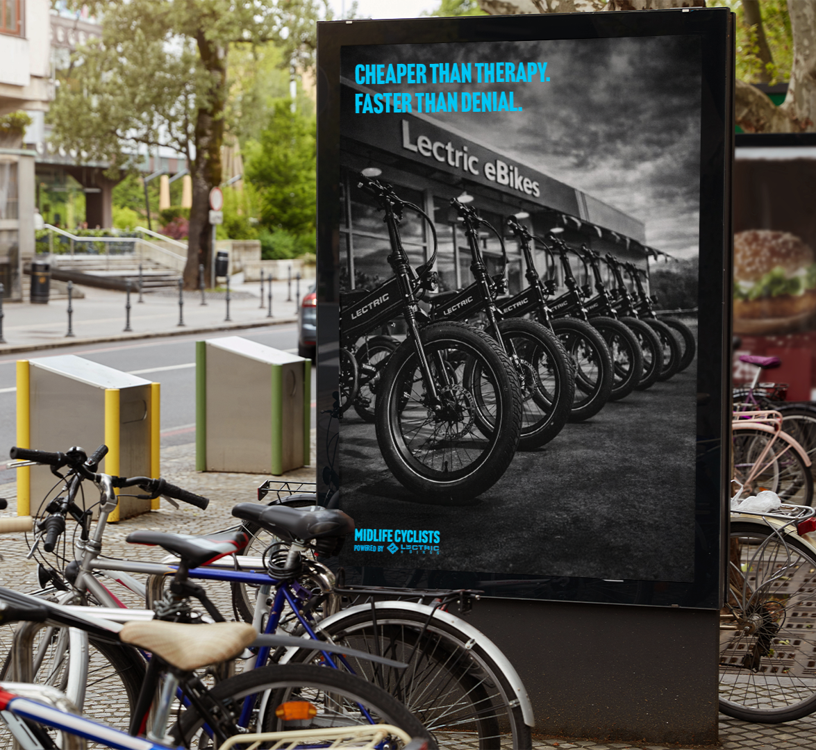 Smart, self-aware OOH in places where our audience is having everyday “midlife” moments. We’re reframing Lectric as the fun, practical upgrade they’ll actually use daily.