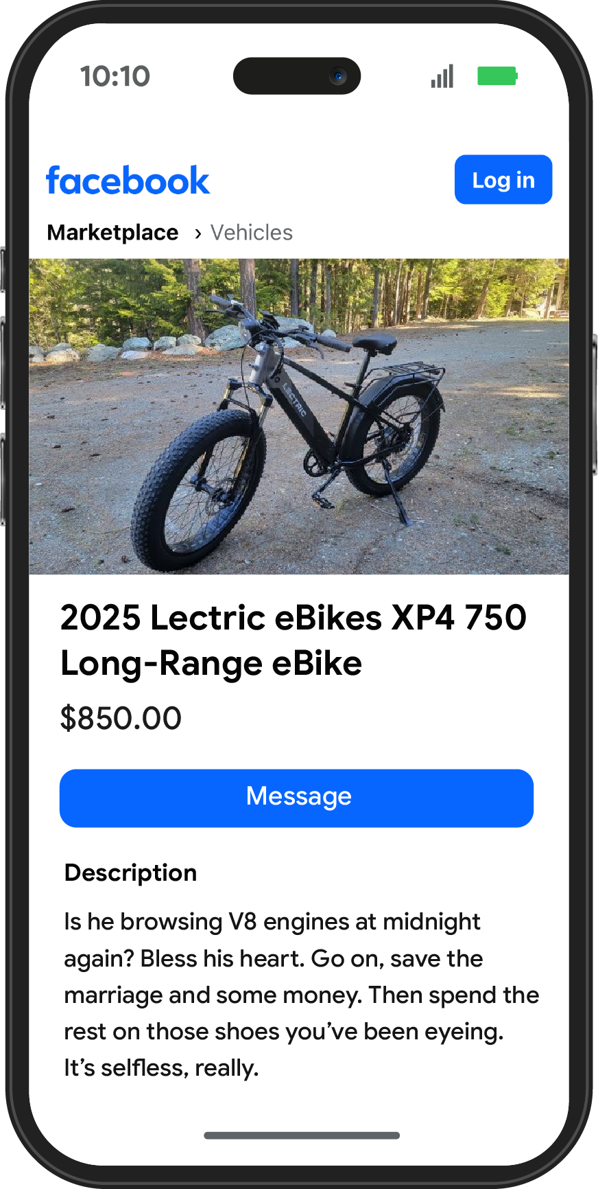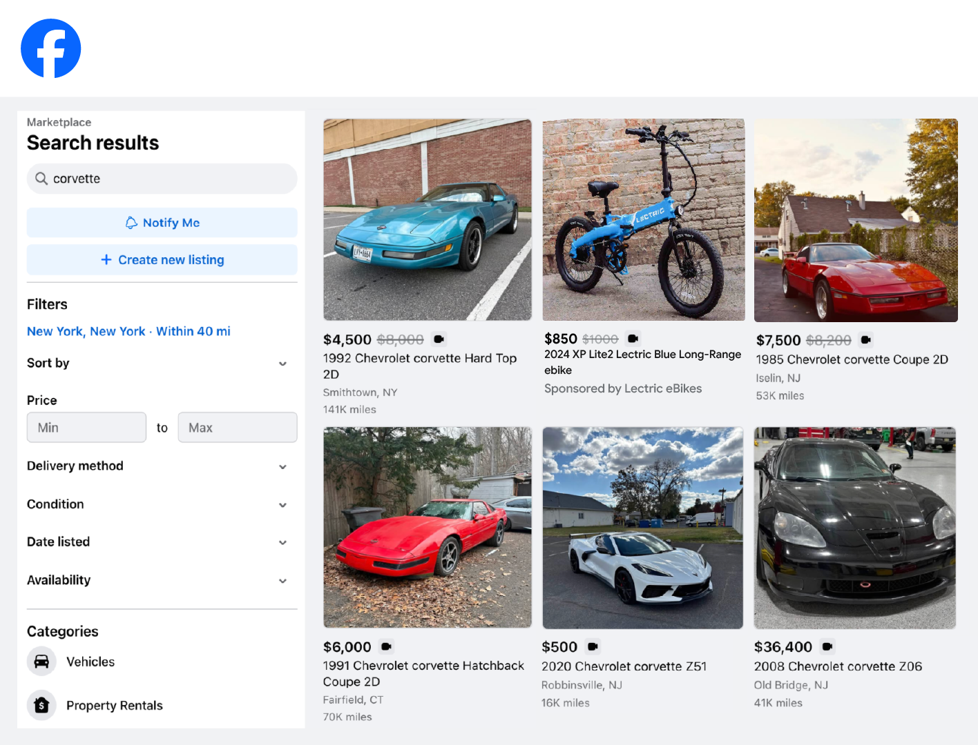 We'll place sponsored Lectric eBike ads directly in Facebook Marketplace search results for classic midlife-crisis purchases: vintage motorcycles, sports cars, etc.